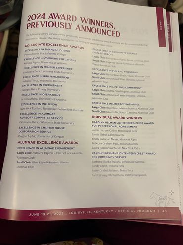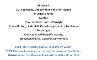 This year, we are very proud to announce that our club AGAIN won the Pi Beta Phi Premier Club (Small) Award at our annual convention in Louisville. Each year, Pi Phi celebrates clubs that exemplify our mutual values and provide a premier experience to members -- and as we share this wonderful news, we wanted to once again thank all of our members for being such important and valued assets to our club. Thank you, thank you, thank you!